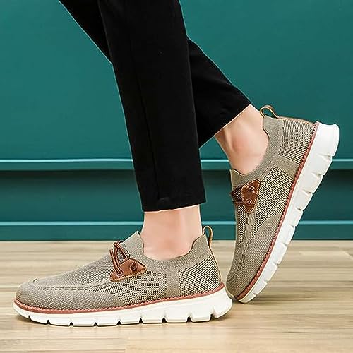 AMAZIDEAL Men's Knited Mesh Barefoot Shoes Casual Lace Up Walking Sneakers Comfortable Slip On Lightweight Breathable Driving Loafer 6