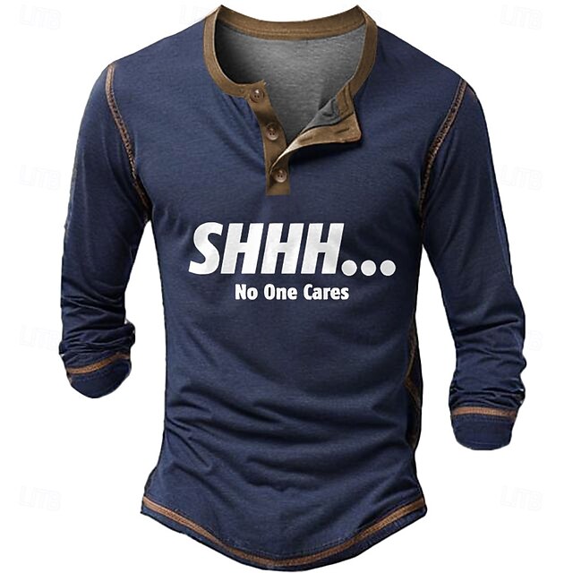More information about Men's Christmas Solid Color Letter SHHH... No One Cares Henley Shirt Long Sleeve 3D Printing Daily Simple Funny Christmas Party Street Winter Spring & Fall Black Navy Blue Henley Henley T-Shirt
