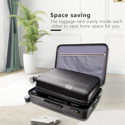 Hardshell Luggage Sets, Lightweight Carry-on with Spinner Wheels,Travel Rolling Suitcase Clearance with TSA Lock for travel (Black, 2-Piece Set 24/28) 4