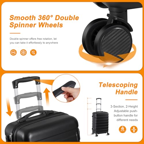• 【Telescopic Handle & Built-in Lock】The handle of this Hardshell suitcase is retractable, and the height of the handle can be adjusted from 11.6 inches to 19.6 inches according to your needs. This suitcase is also equipped with a three position combination lock. It allows you to quickly lock your suitcase to ensure travel safety. Two zippers also make it easy for you to open and close the luggage. It is not recommended to sit on the suitcase