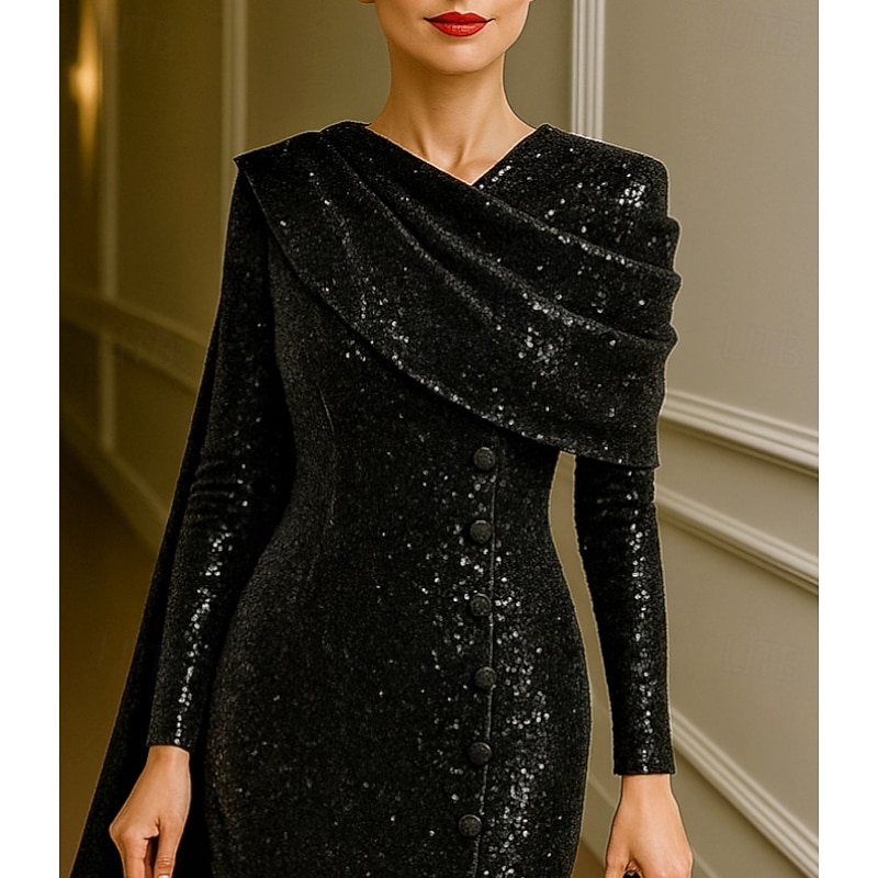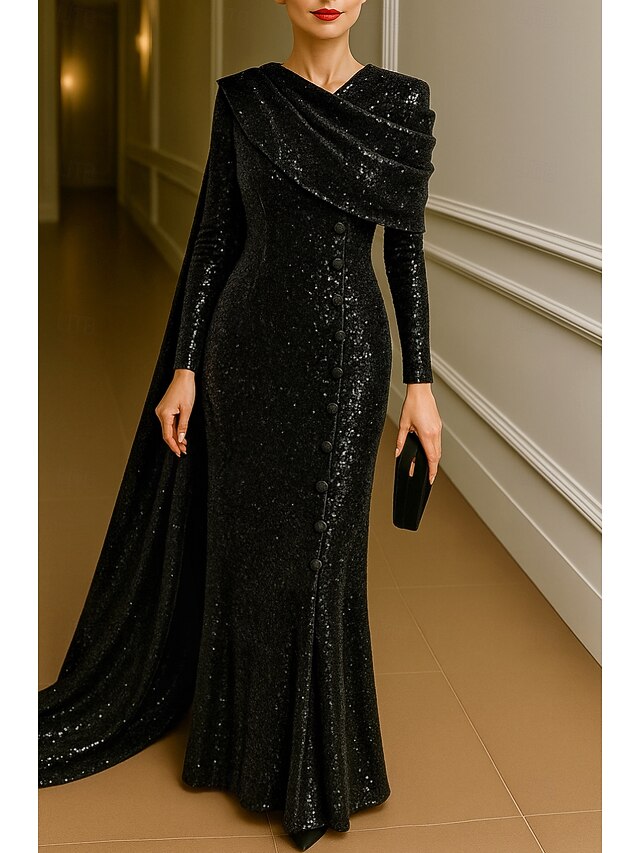 $159.99 - Black Red Sequined Sheath / Column Evening Gown Elegant Dress Formal Wedding Floor Length Long Sleeve High Neck Capes with Glitter 2025 2025. Shop for cheap Ball Gown Evening Dresses online? Buy at lightinthebox.com on sale today!