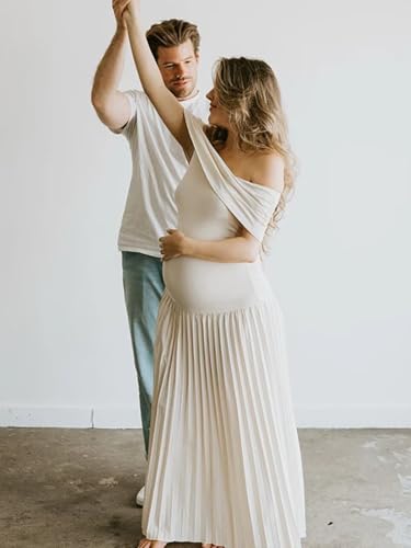 • Features: Off the shoulder, pleated, maxi, half sleeve, long, flowy, stretch waist, plus size. This maternity dress for photoshoot exudes timeless elegance, creates a flattering look. The bodycon fit ensures a fashion and chic ensemble.
