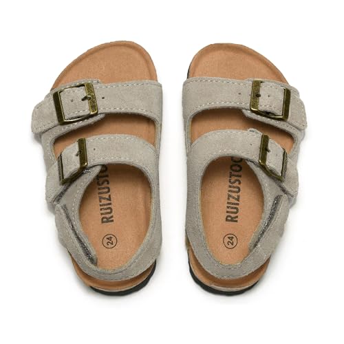 Kids Toddler Suede Sandals Cork Footbed Arch Support Slipper Boys Girls Summer Sandal with Adjustable Buckle and Back Strap Non Slip Open Toe Kid Slippers 4
