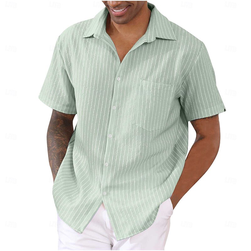 Men's Shirt Summer Shirt Striped Shirt Button Up Shirt Black White Pink Blue Purple Short Sleeve Striped Collar Vacation Daily Clothing Apparel Fashion Casual Comfortable 11