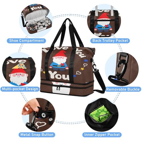 I cherish Your Valentine Cartoon Dwarf Travel Duffel Bags Weekender Bag with Toiletry Bag for Trekking Foldable