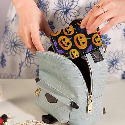 GAIGEO Halloween Pumpkins Bats Black Wallets for Women Zip Around Card Holder Wallets RFID Blocking Compact Coin Purse Pouch with Zipper 5