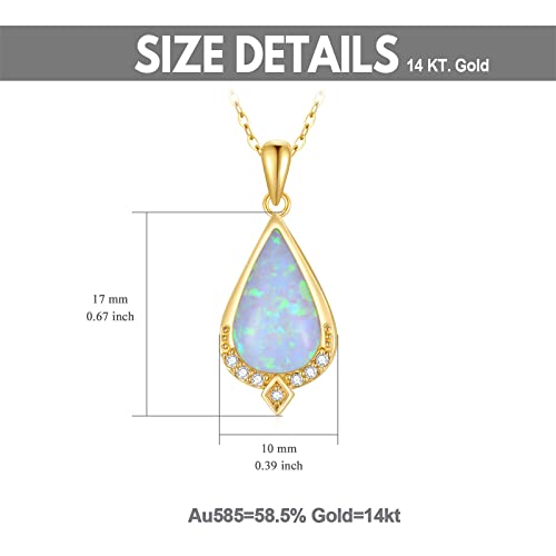 14K Real Gold White Opal Necklace with Genuine Diamond for Women Dainty Teardrop Opal Pendant Necklace for Birthday Anniversary 16" - 18" 1
