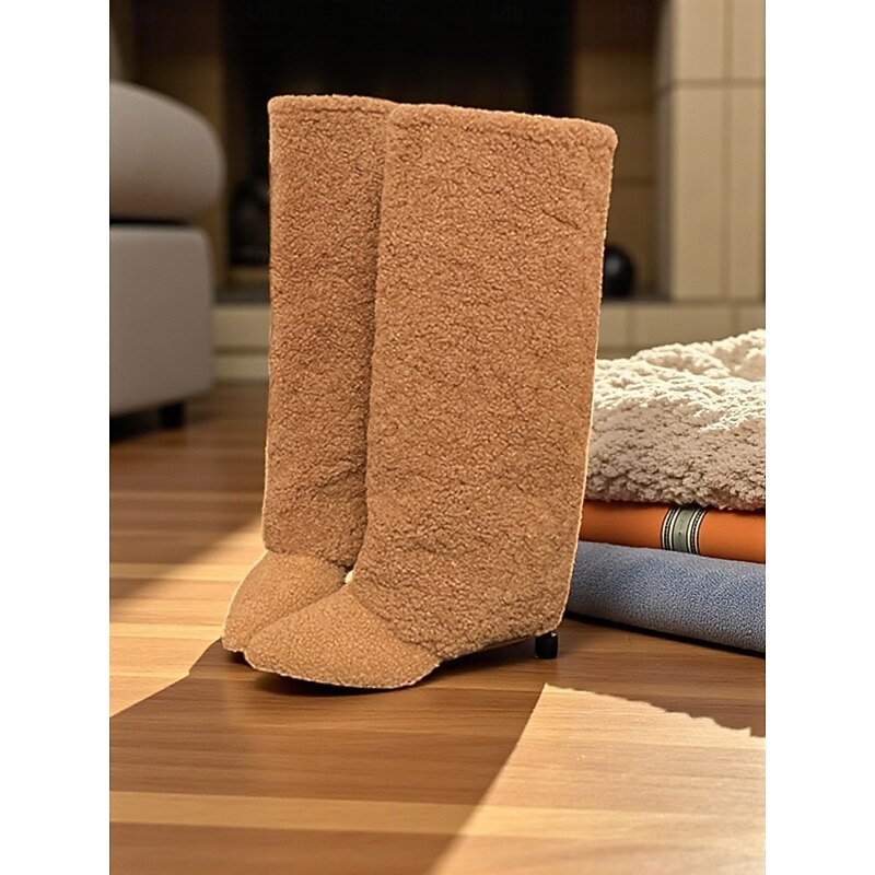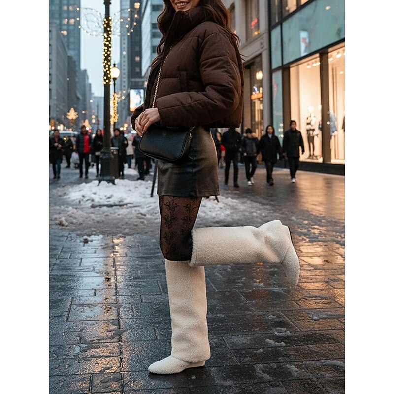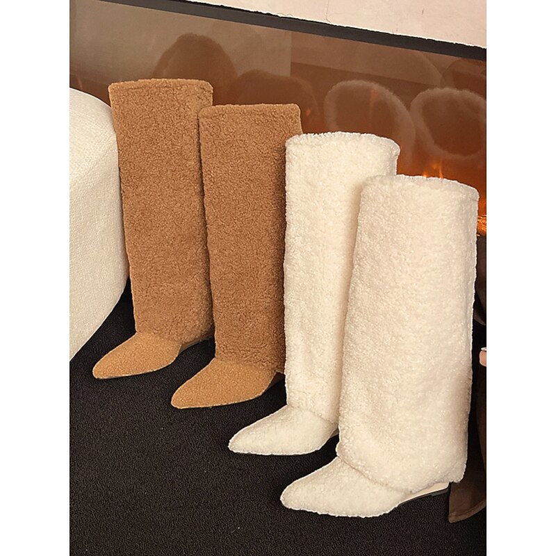 More information about Women's White Fleece Knee High Boots Cozy Warm Winter Shoes with Pointed Toe for Casual City Outfits
