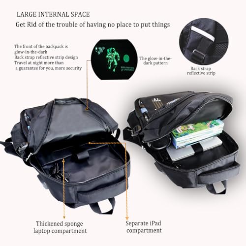 Luminous Backpack School Bag with Anti-Theft Lock Luminous Pattern Travel Laptop Waterproof Black With Usb Charging Port & Headphone Port School Backpack Includes Luminous Pencil Bag 4