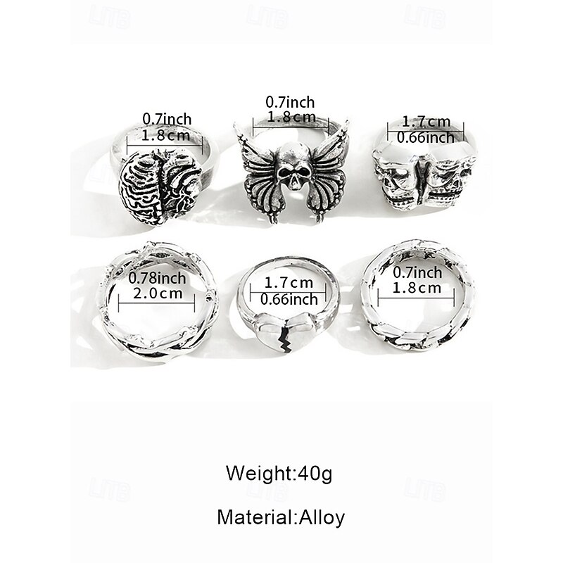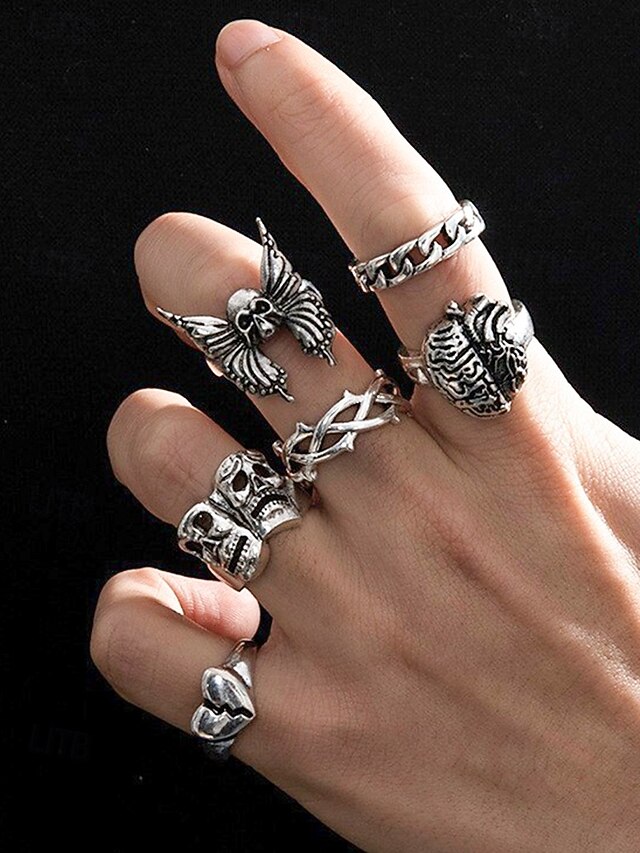 $9.99 - Men's Halloween Gothic Ring Set - with skull, Brain, Butterfly and chain designs, Stackable punk knight jewelry for men and teen boys, Perfect for costume parties, Cosplay, Concerts and nights out 2025. Shop for cheap Halloween Accessories online? Buy at lightinthebox.com on sale today!