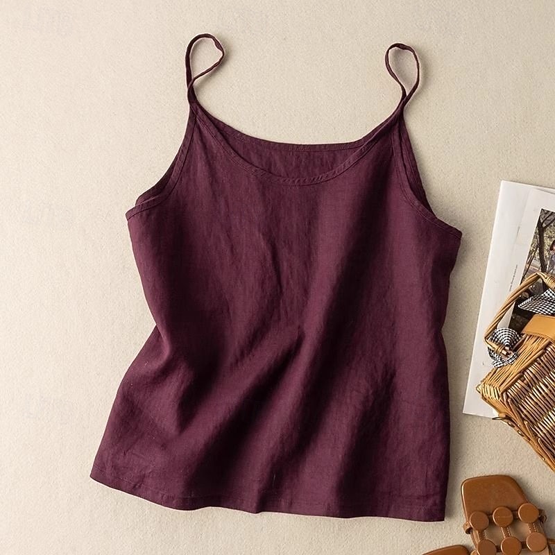 Women's Cotton Linen Vest Blouse Plain Modern Casual Sleeveless Strap Regular Tops Holiday Going out Black White Purple Apricot Summer 11