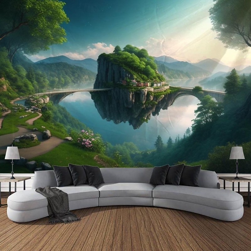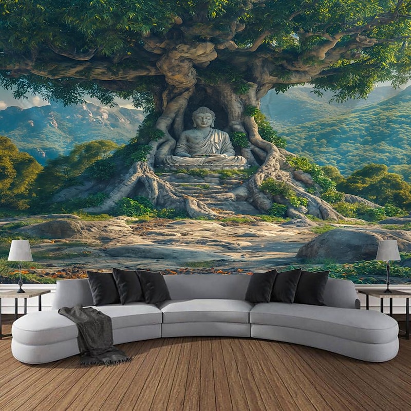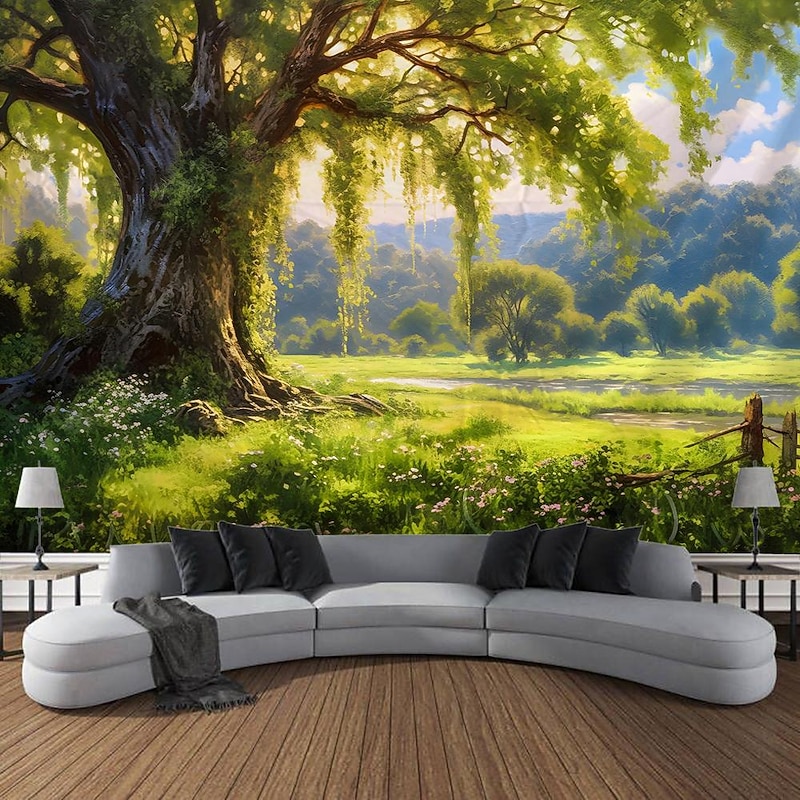 HOT ! L.T.HOME Tree of Life Landscape Hanging Tapestry Wall Art Large Tapestry Mural Decor Photograph Backdrop Blanket Curtain Home Bedroom Living Room Decoration