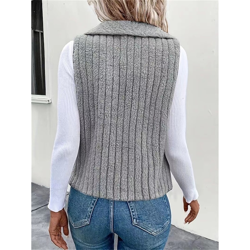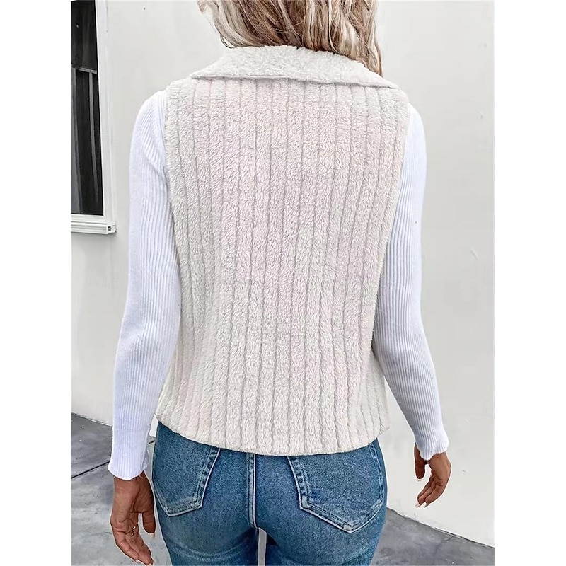 More information about Women's Fleece Vest Warm Breathable Fleece Lined Casual Plain Vacation Street Daily Wear Going out Open Front Regular Turndown Regular Fit Sleeveless Outerwear White Khaki Gray Fall Winter