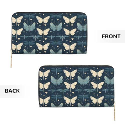 Leather Thin Slim Wallets for Women & Men - Elegant Butterfly Dragonfly Print Card Wallet Holder with Zipper 1