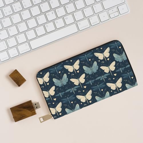 HOT ! Leather Thin Slim Wallets for Women & Men - Elegant Butterfly Dragonfly Print Card Wallet Holder with Zipper
