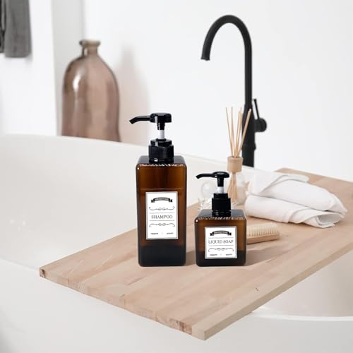 • 【Multifunction】: This refillable shampoo dispenser bottles is perfect for bathroom or kitchen for storing and distributing hand sanitizer, detergent, lotion, shampoo, essential oils, etc. Each package comes with several easy to read permanent, waterproof labels for you to distinguish easily.