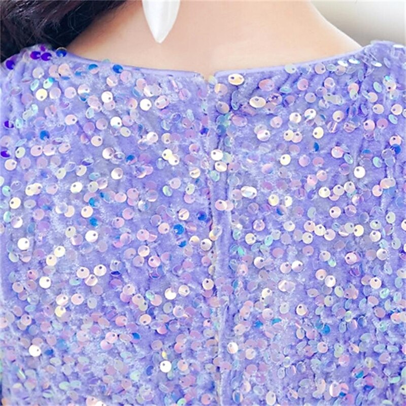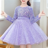 More information about Kids Girls' Dress Solid Colored Long Sleeve Party Daily Sequins Bow Elegant Cute Polyester Knee-length Tulle Dress Spring Fall Winter 3-12 Years Purple