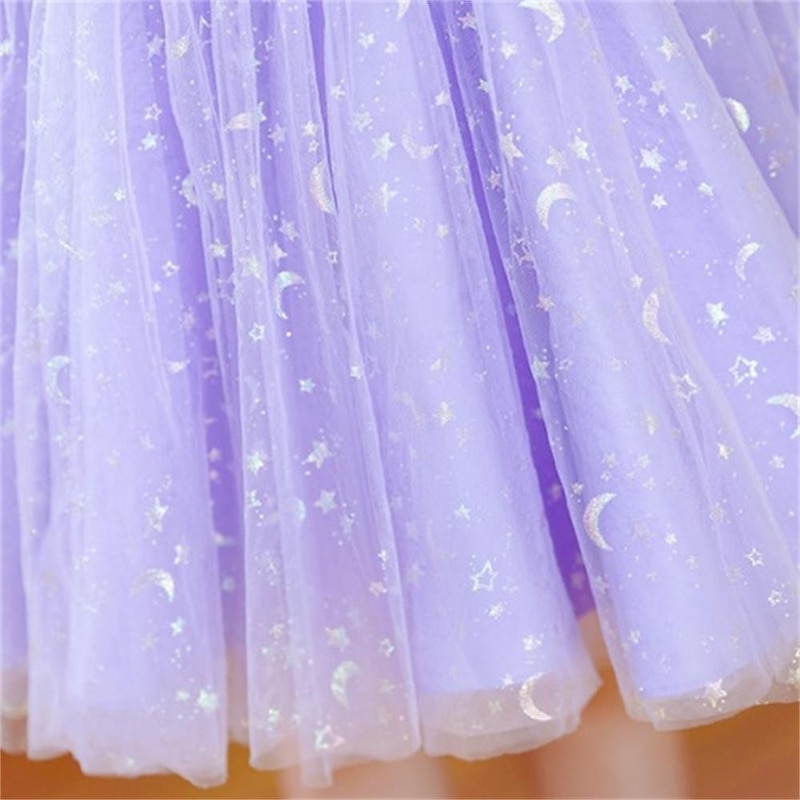 Kids Girls' Dress Solid Colored Long Sleeve Party Daily Sequins Bow Elegant Cute Polyester Knee-length Tulle Dress Spring Fall Winter 3-12 Years Purple 7
