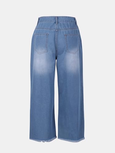 Women's Mid Rise Straight Leg Jeans - Washed Stretch Denim with Slant Pockets, Loose Comfort Fit(Runs Small) 6