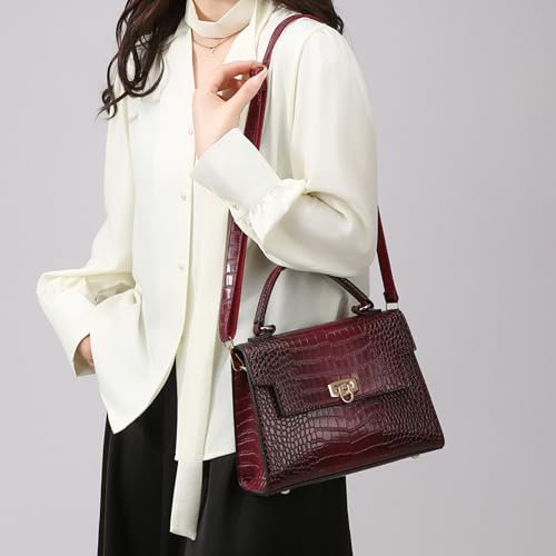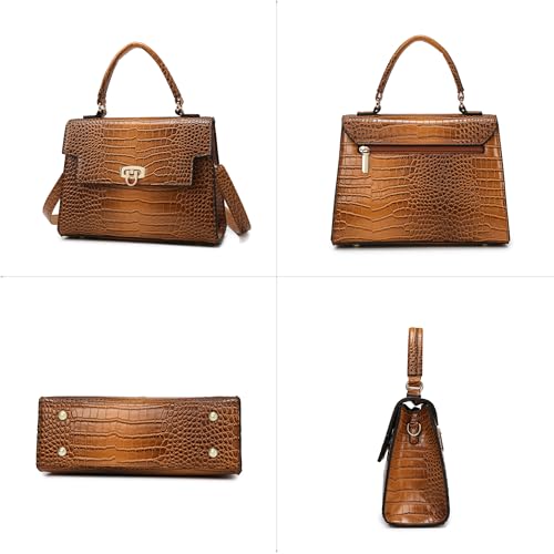 Makukke Shoulder Bag Pu Leather Handbags Crocodile Pattern Top Handle Purse Trendy Crossbody Bag for Women Flap Satchel Bags 5