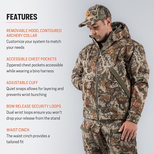 • Treestand-Friendly Features | Safety harness pass-through, Kitlink port for accessing thermal muffs, contoured archery collar, removable hood, and adjustable cuffs prepare you for frozen hunts.