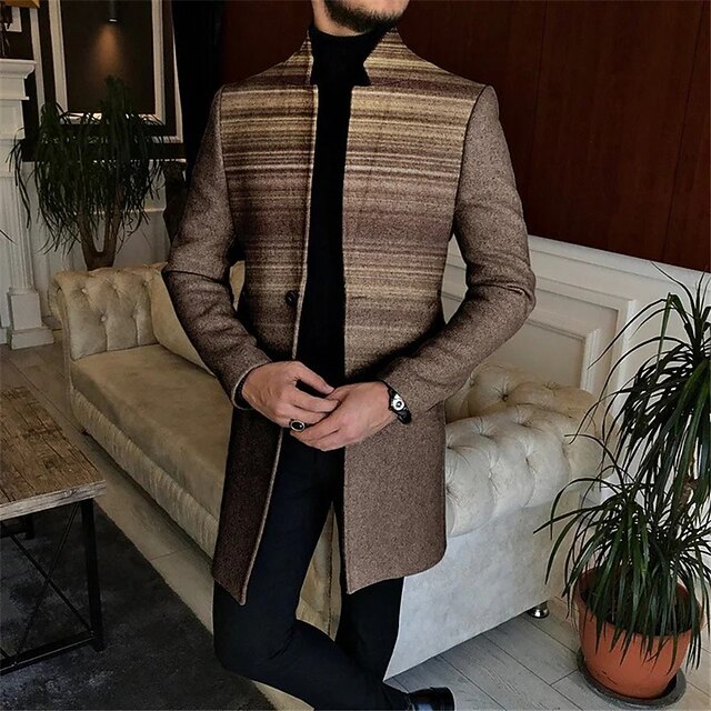 More information about Men's Stripe Geometry Winter Coat Overcoat Coat Warm Comfortable Breathable Fashion Streetwear Business Work Wear to work Going out Pocket Print Fall & Winter Turndown Long Sleeve Black Blue Green