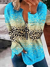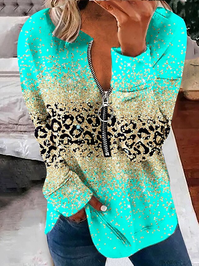 More information about Women's Pullover Sweatshirt Zip Up Sweatshirts Graphic Animal Leopard Fashion Casual Long Sleeve Crew Neck Regular Tops Street Dailywear Zipper Print Light Pink Light Green Blue Purple Spring Fall