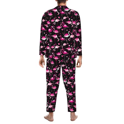 Mens Pink Flamingo Pajama Set,Long Sleeve Pajamas & Long Pants with Pockets, Button-up Sleepwear Lounge Pjs 1