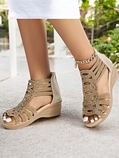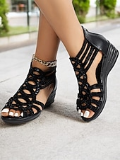 More information about Women's Gladiator Wedge Sandals – Strappy Rhinestone-Embellished Open-Toe Sandals for Casual Summer Wear and Elegant Outings