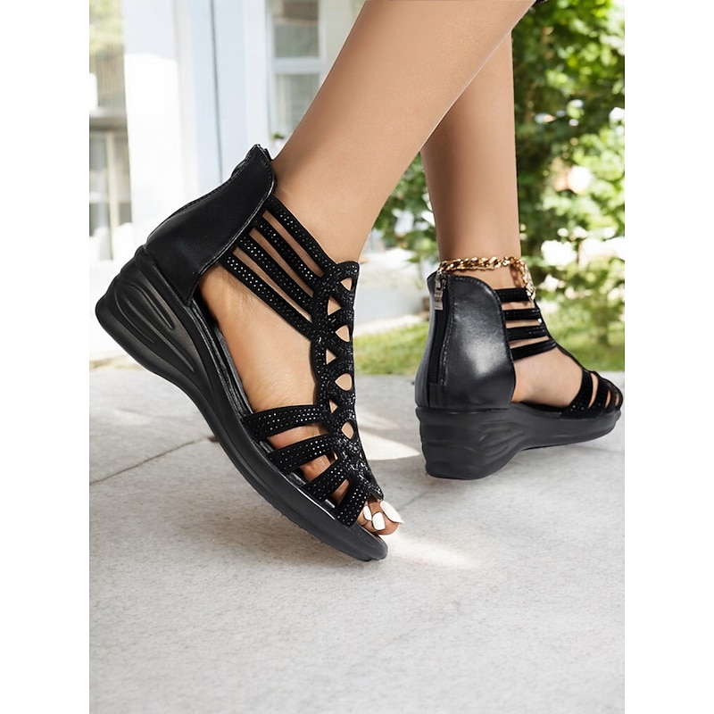 Women's Gladiator Wedge Sandals – Strappy Rhinestone-Embellished Open-Toe Sandals for Casual Summer Wear and Elegant Outings 1