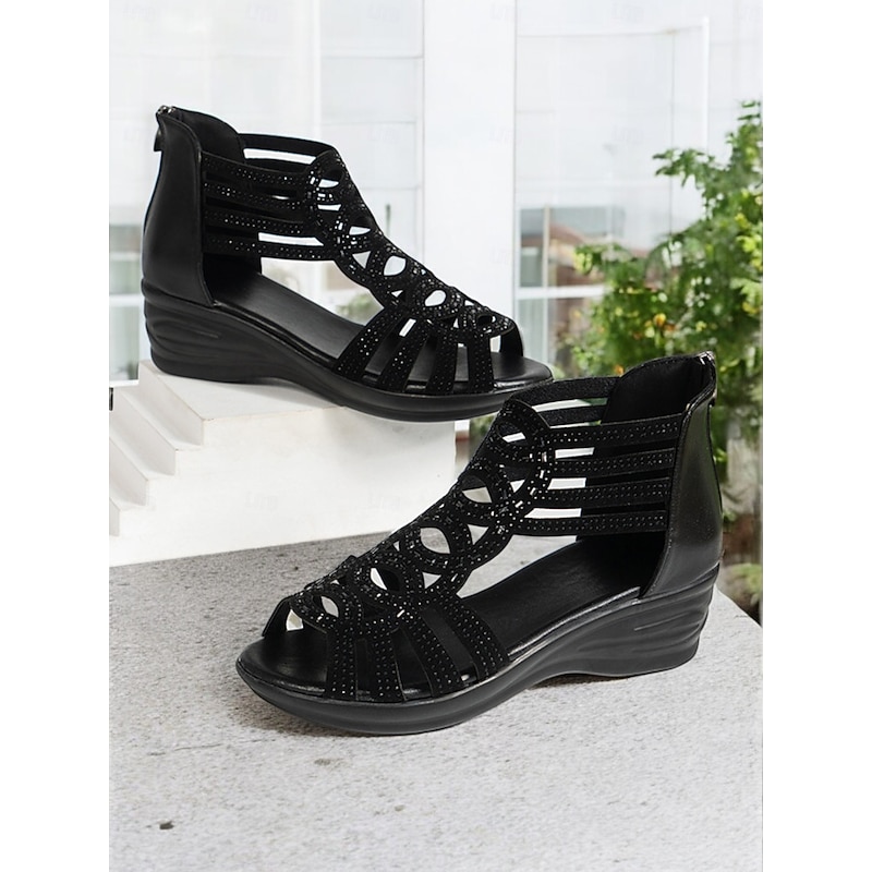 HOT ! Women's Gladiator Wedge Sandals – Strappy Rhinestone-Embellished Open-Toe Sandals for Casual Summer Wear and Elegant Outings