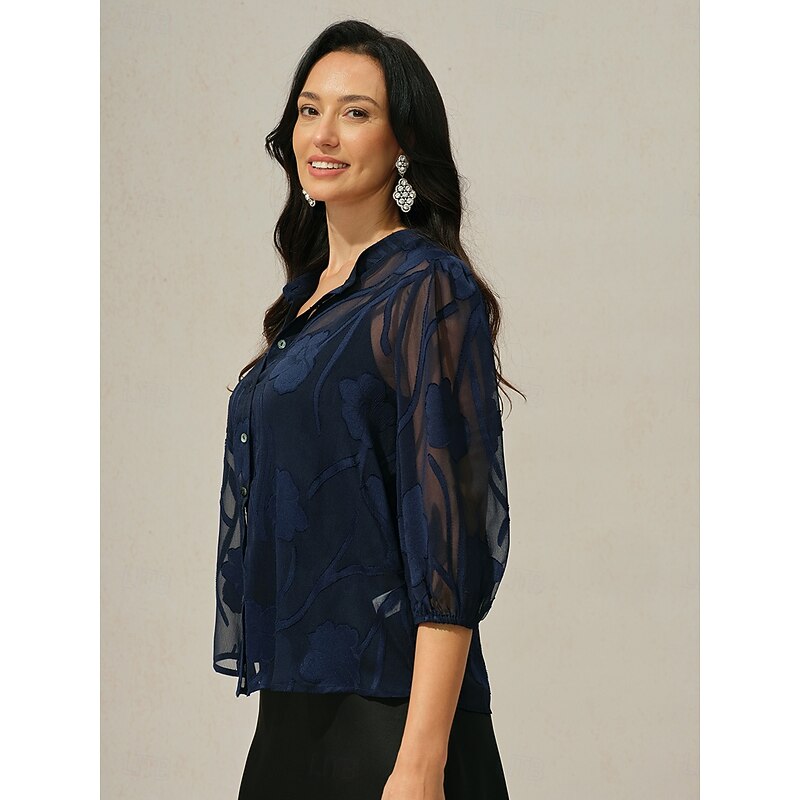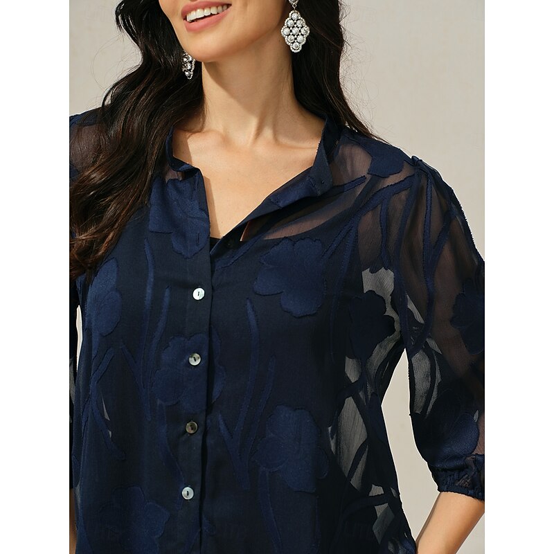 More information about Women's Blouse Button-Up Shirt with Camisole Floral Elegant Vintage Stylish Half Sleeve V Neck Regular Tops Work Holiday Going out Buttons Eyelet Navy Blue Summer Spring Fall
