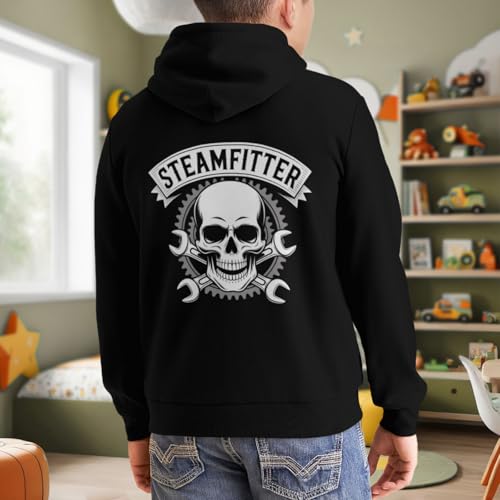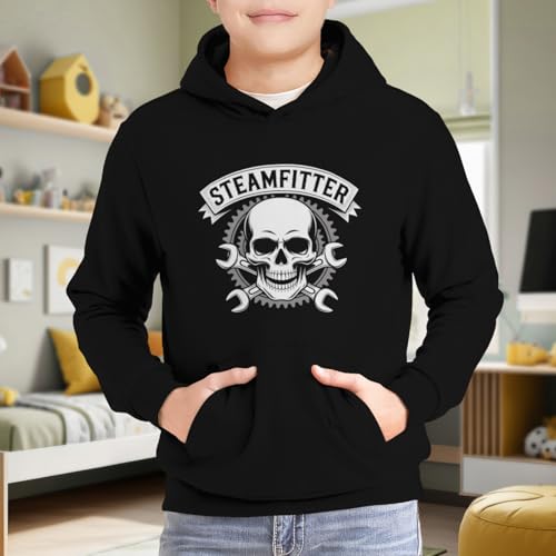 HOT ! Kids Vintage Steamfitter Skull Boys Girls Lightweight Kangaroo Pocket Fleece Hoodies