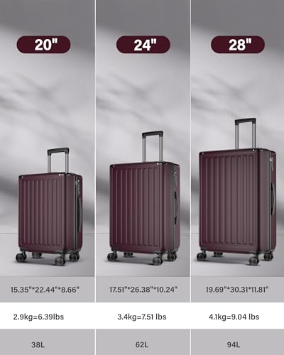 • Checked luggage: 28 inch luggage with spinner wheels,Hardsided PC+ABS durable material