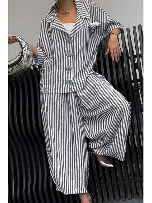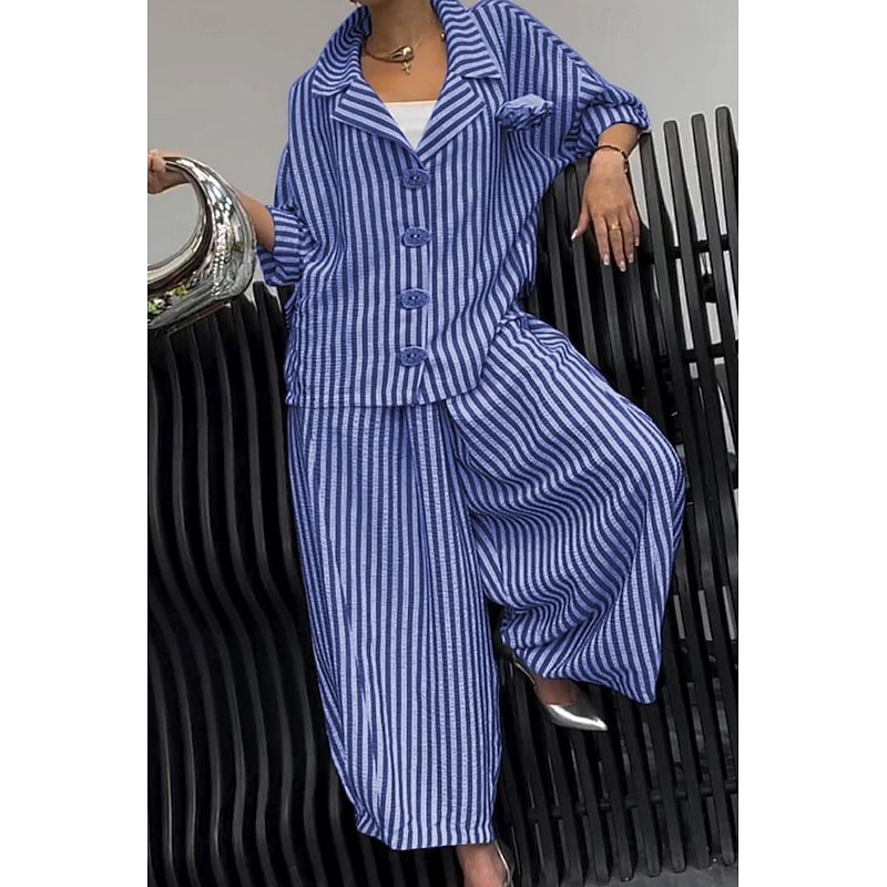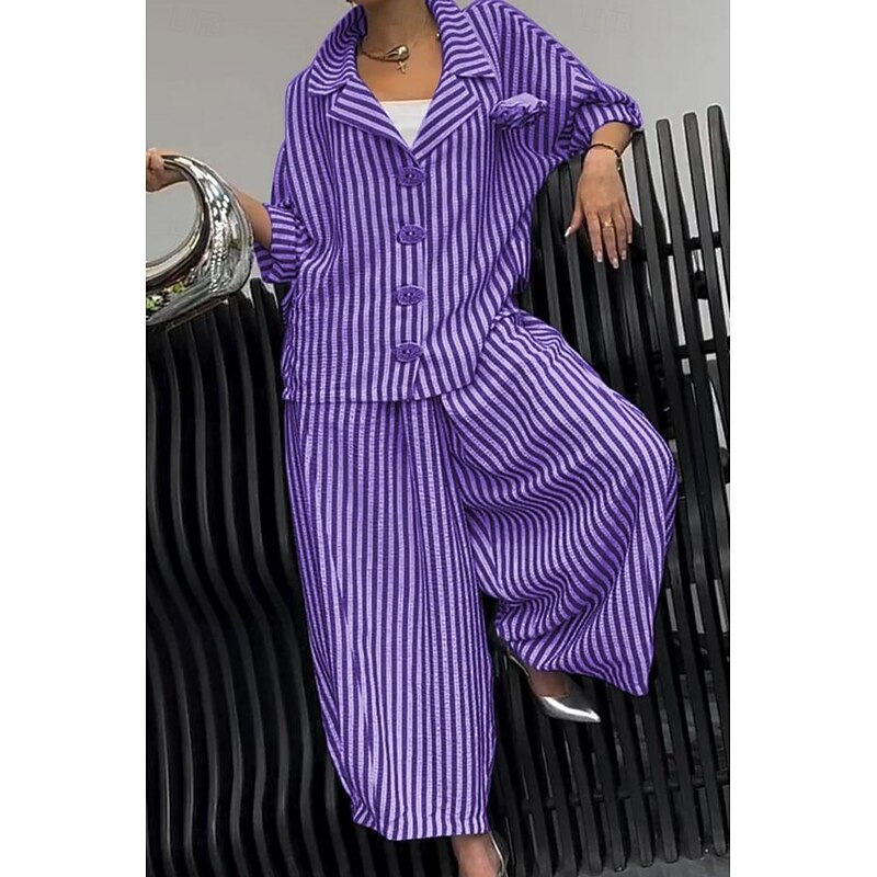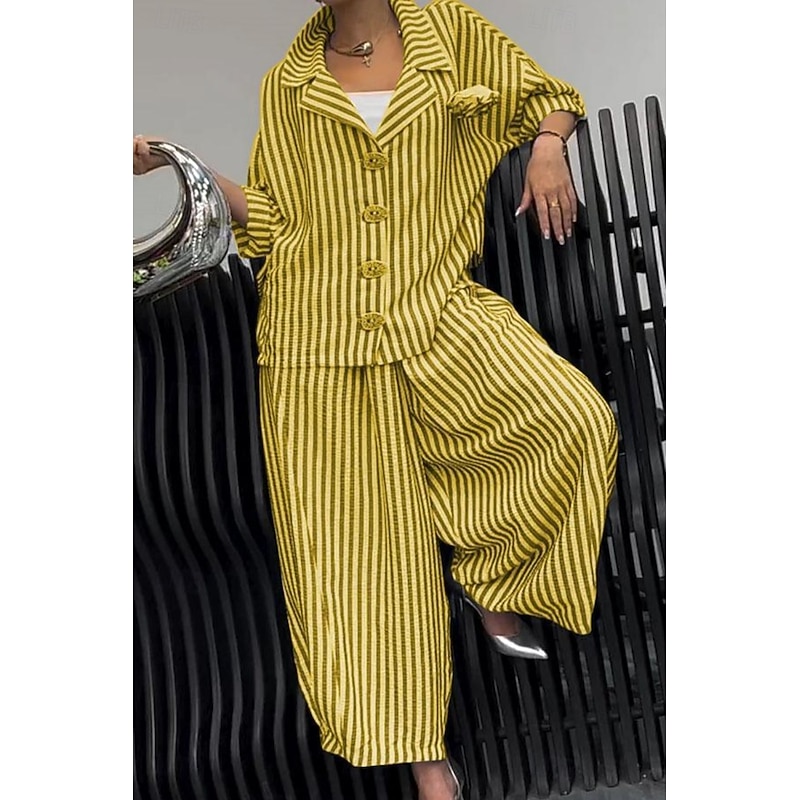More information about Women's Shirt Striped Stylish Casual Long Sleeve Shirt Collar Regular Tops Daily Holiday Buttons Print Yellow Red Blue Purple Green Summer Spring Fall