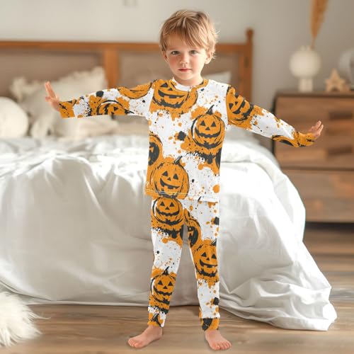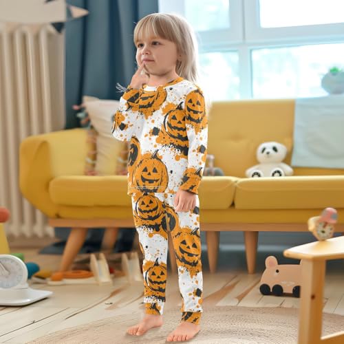 Pajama Sets Long Sleeve Halloween Pumpkin Splatter Design Soft Comfy Sleepwear 2 Piece PJS 3-8T 2