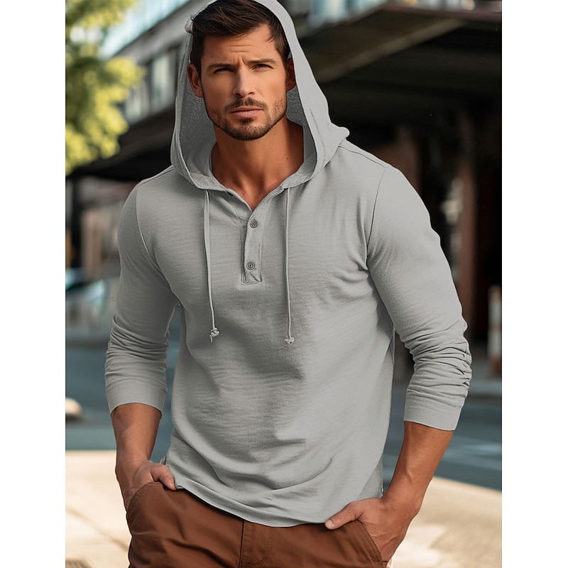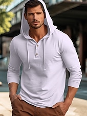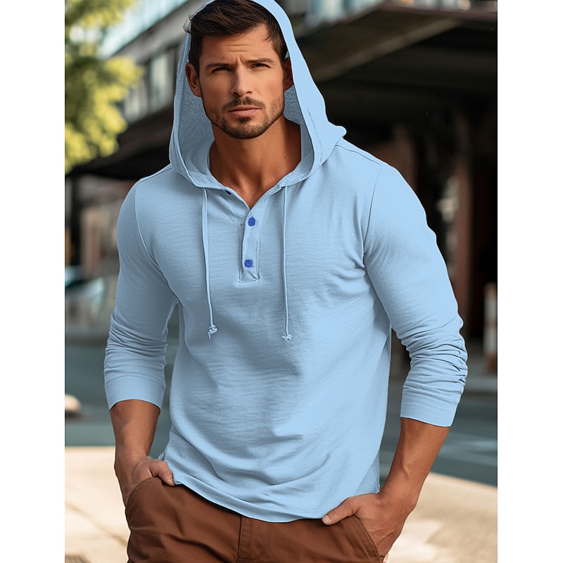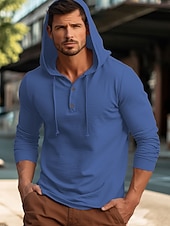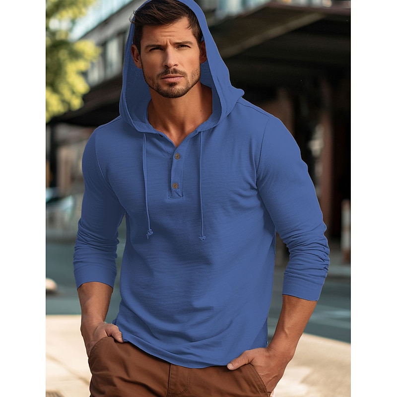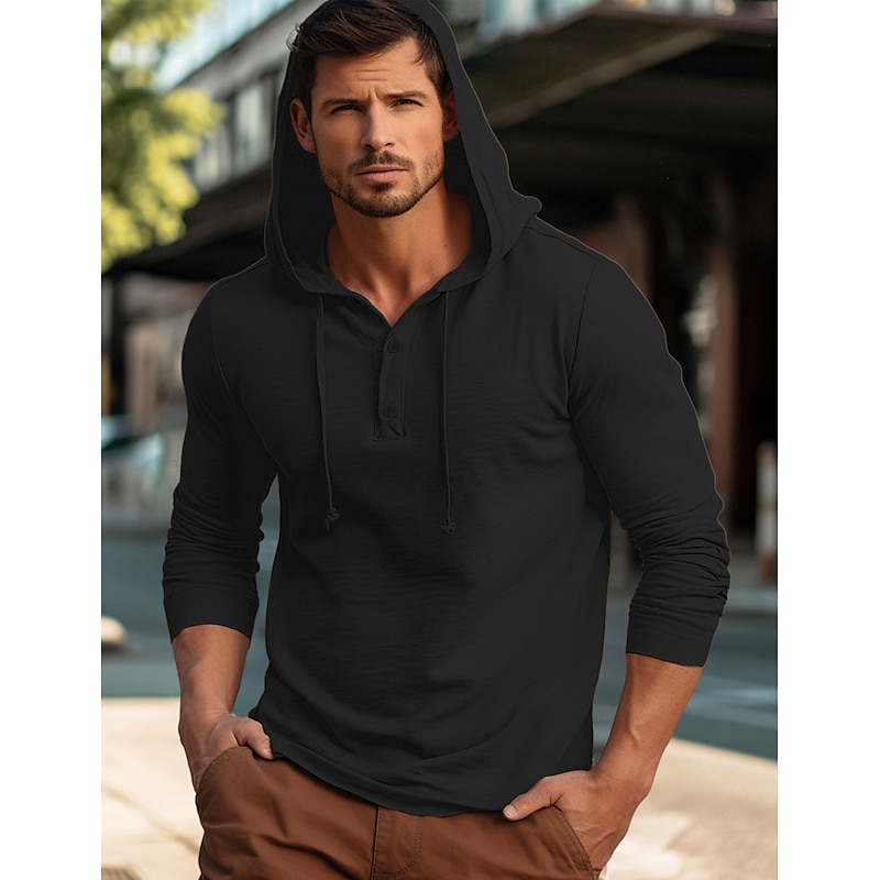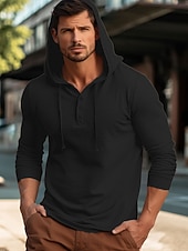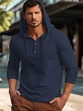 More information about Men's Shirt Cotton Linen Shirt Plain Vacation Casual Black White Navy Blue Blue Long Sleeve Hooded Spring & Fall Clothing Apparel Buttons