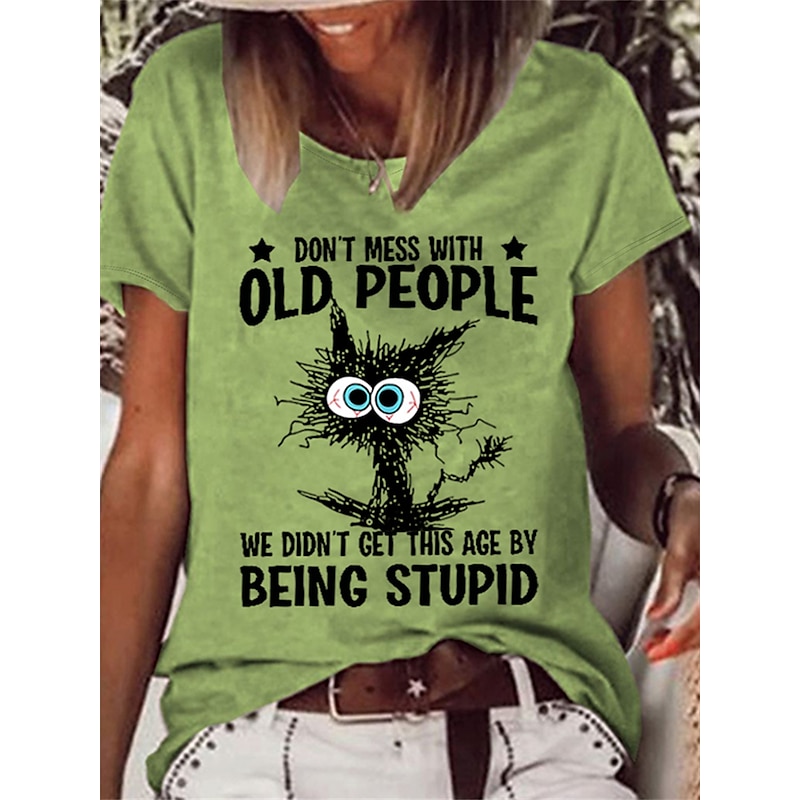 More information about Women's T Shirt Cat Letter Text Basic Short Sleeve Round Neck Regular Tops Daily Weekend Print White Pink Blue Green Gray Spring, Fall, Winter, Summer