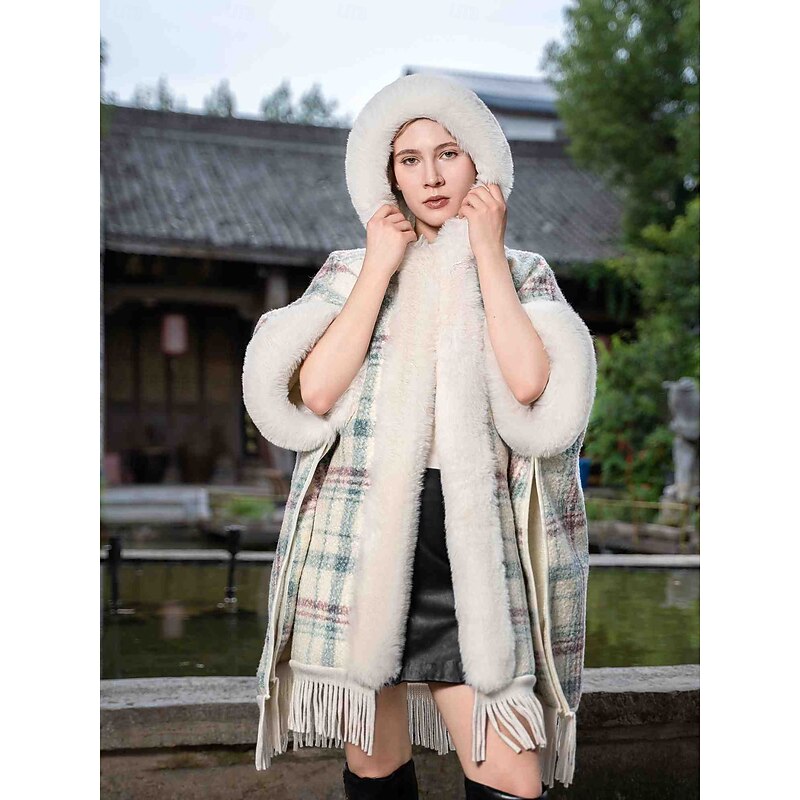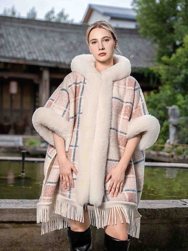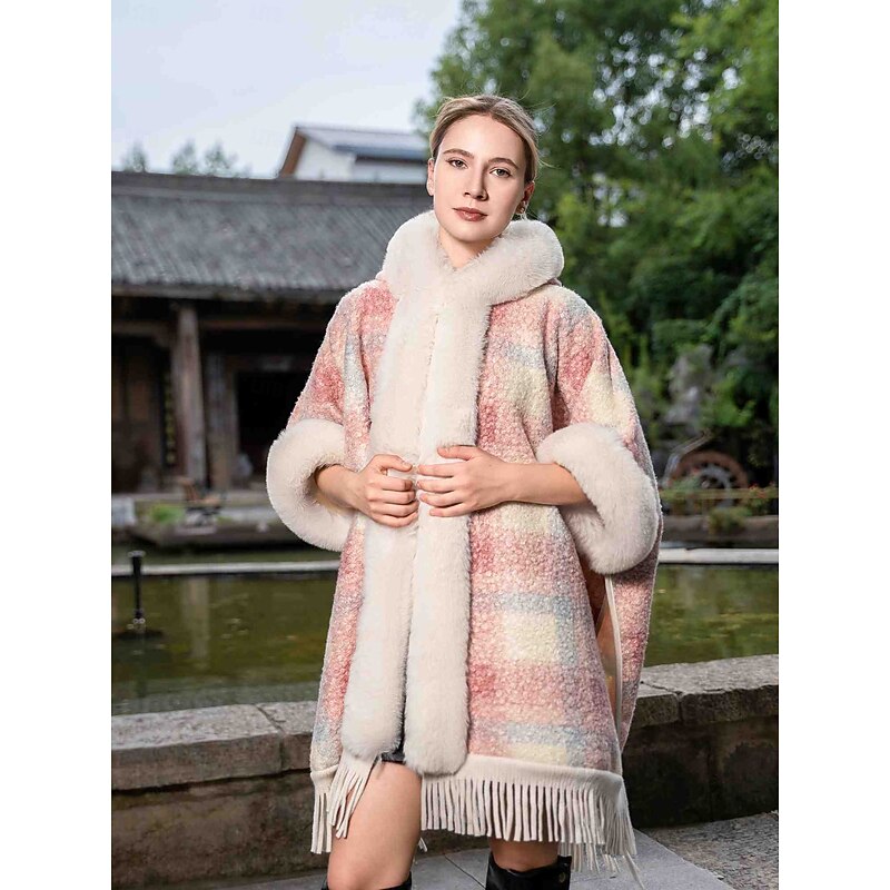 Faux Fur Wraps Casual Daily Keep Warm Half Sleeve Batwing Sleeve Polyester Wedding Wraps With Tassel For Special Occasion Fall & Winter 14