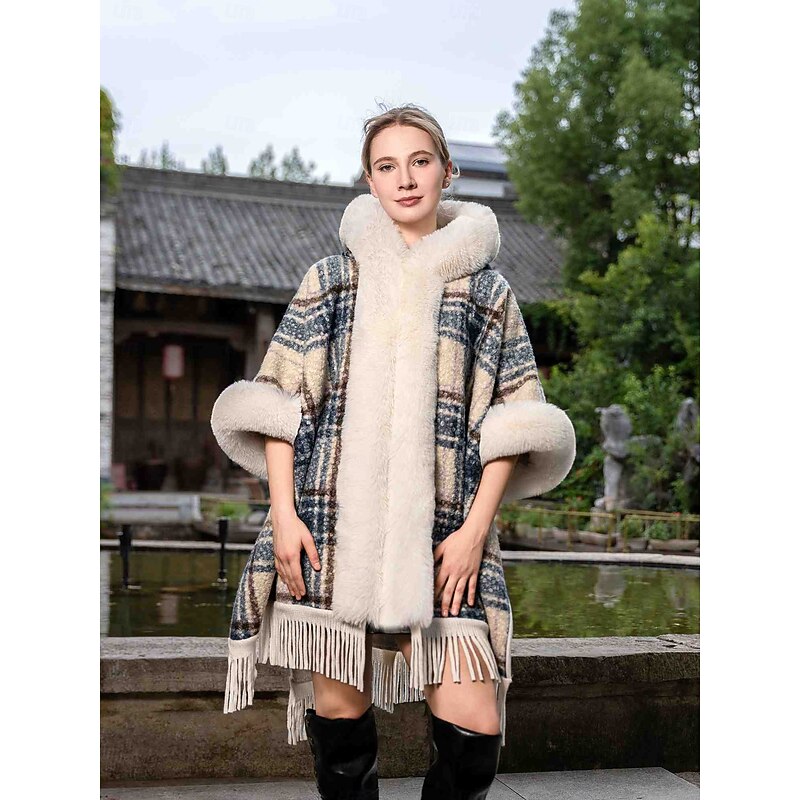 Faux Fur Wraps Casual Daily Keep Warm Half Sleeve Batwing Sleeve Polyester Wedding Wraps With Tassel For Special Occasion Fall & Winter 7