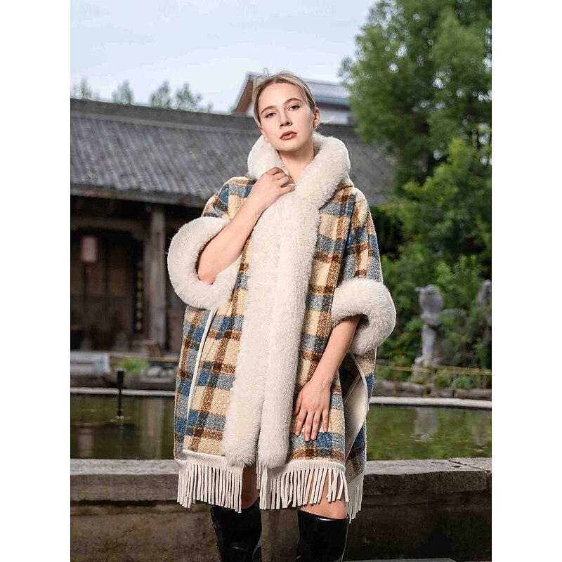 Faux Fur Wraps Casual Daily Keep Warm Half Sleeve Batwing Sleeve Polyester Wedding Wraps With Tassel For Special Occasion Fall & Winter 20