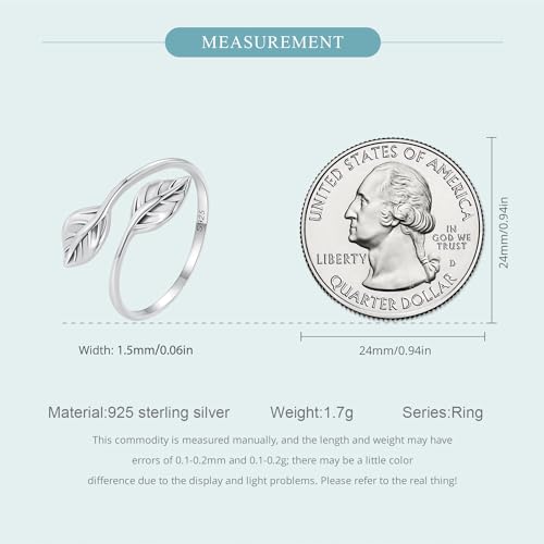 More information about MUNDELL 925 Sterling Silver Simple Multi-layer Leaf Adjustable Ring Green Lucky Leaves Statement Ring for Women Promise Ring Fine Jewelry