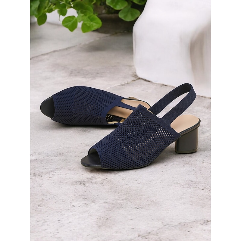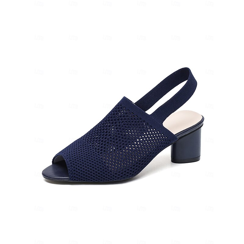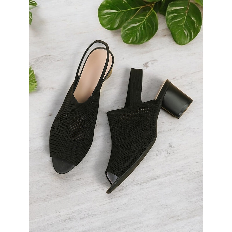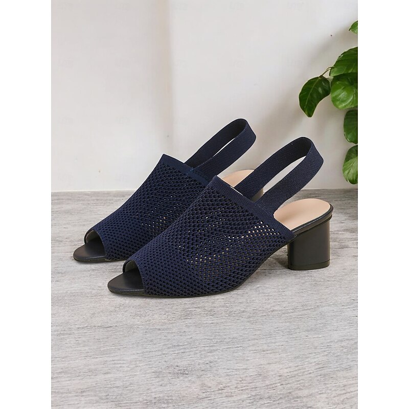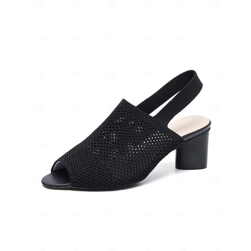 Women's Flyknit Peep Toe Block Heel Sandals - Stylish Breathable Summer Shoes for Office & Casual Outfits 1