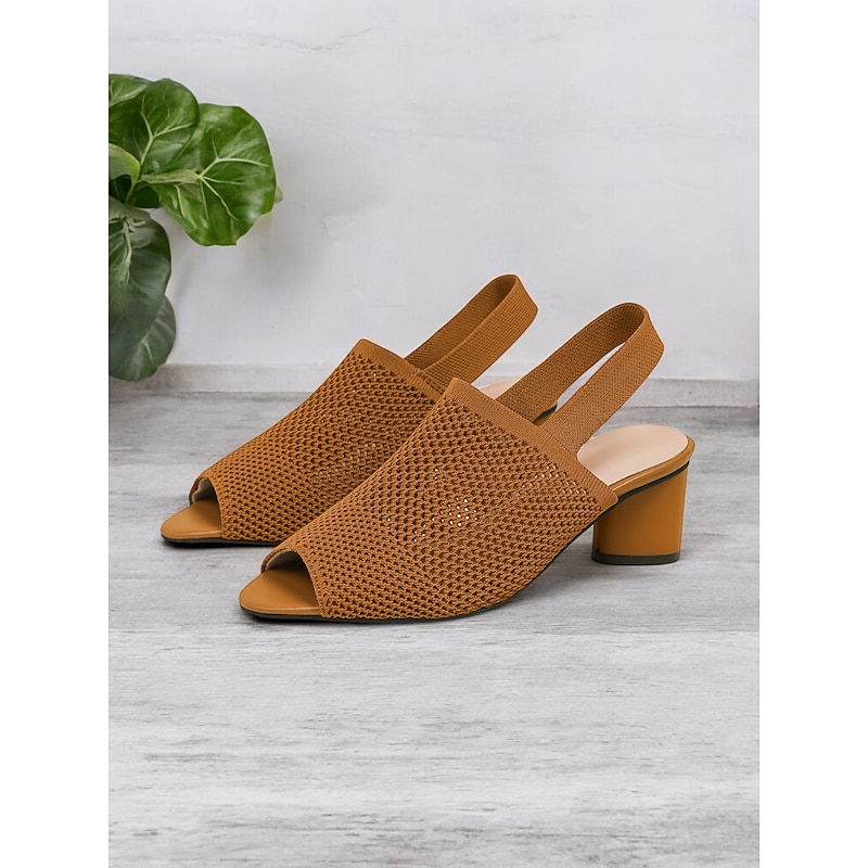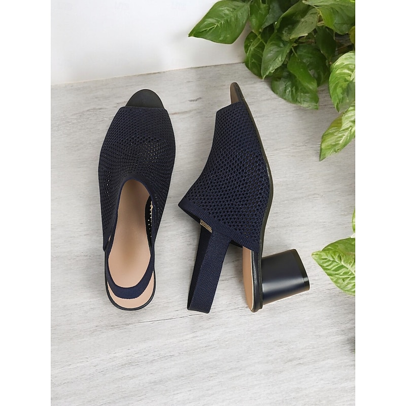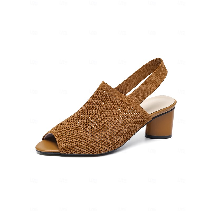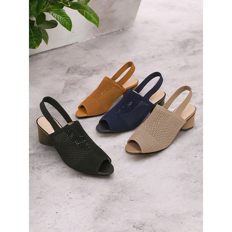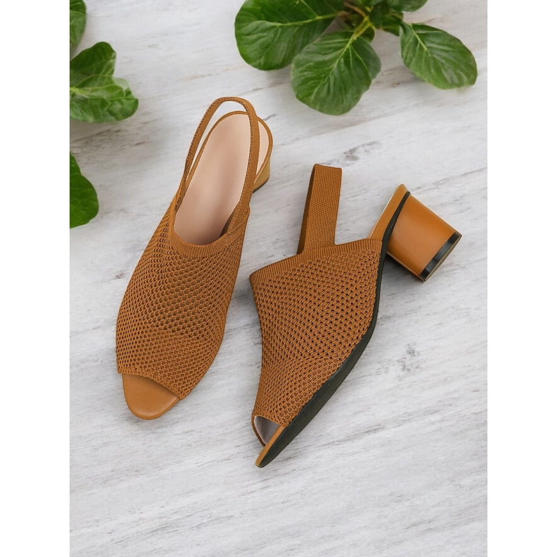 Women's Flyknit Peep Toe Block Heel Sandals - Stylish Breathable Summer Shoes for Office & Casual Outfits 1