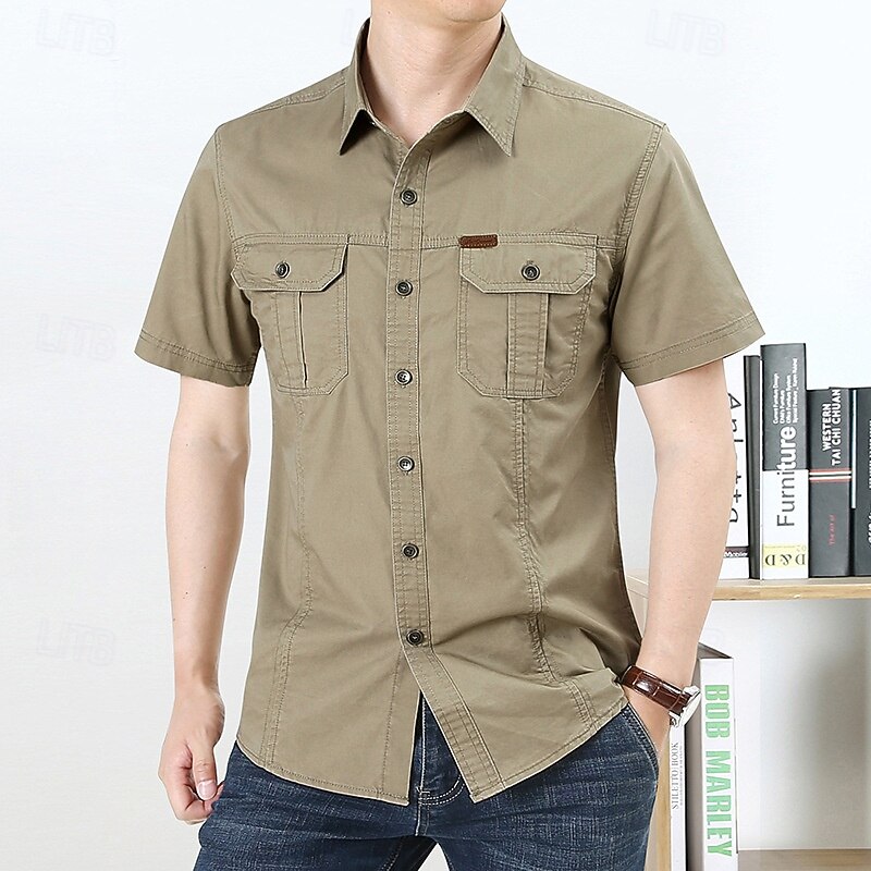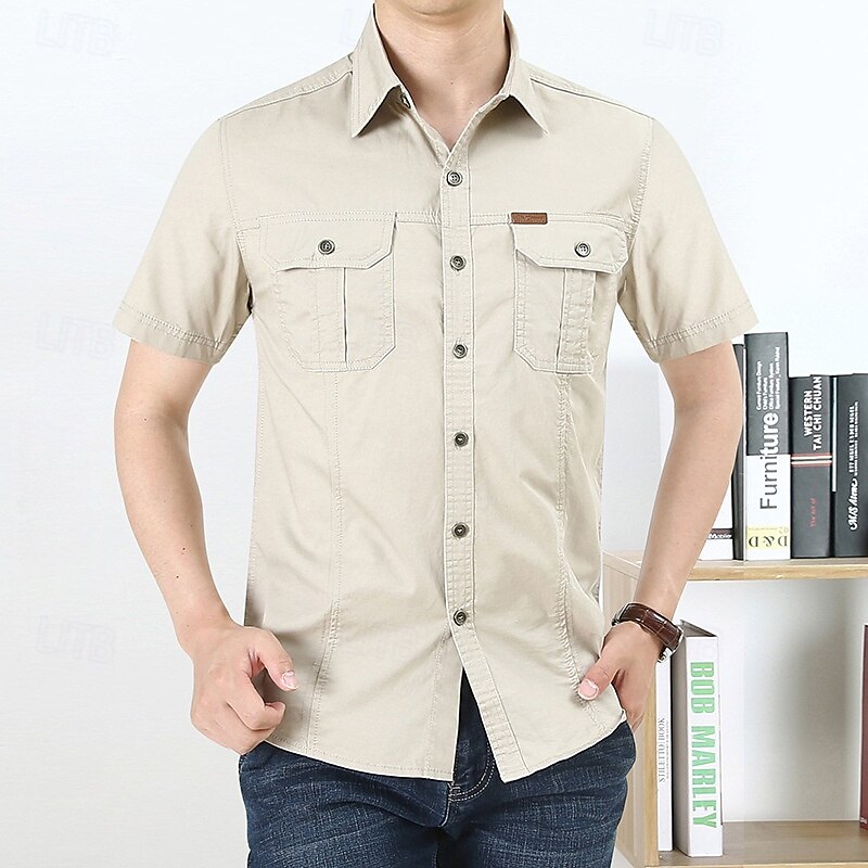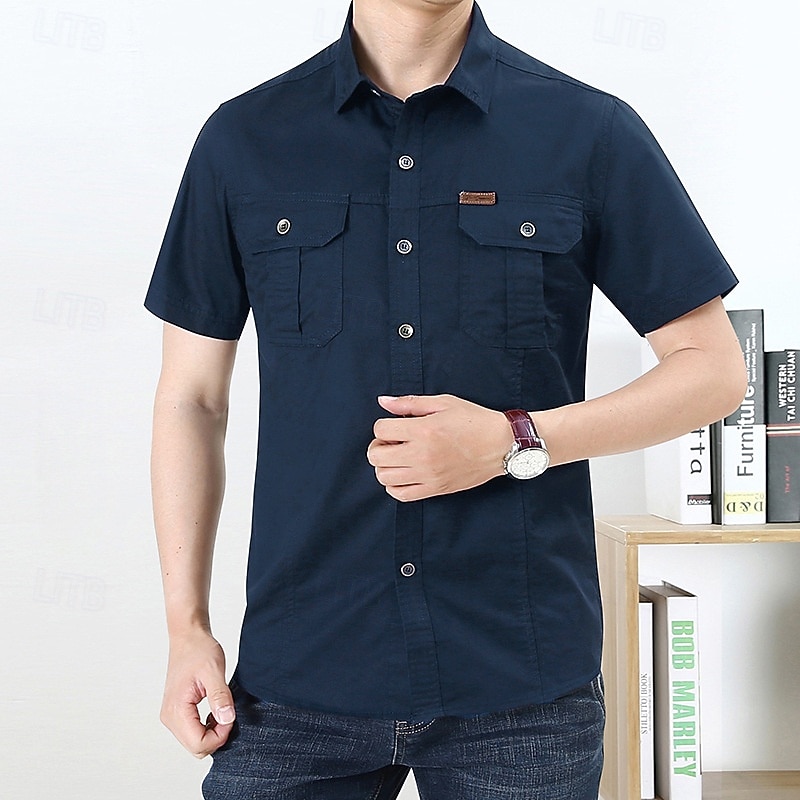 More information about Men's Shirt Summer Shirt Casual Shirt Button Up Shirt Cargo Shirt Black Yellow Blue Orange Green Short Sleeve Plain Shirt Collar Vacation Hawaiian Pocket Clothing Apparel 100% Cotton Fashion Casual