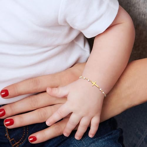 Baby Baptism Cross Bracelet Gift : 18k Gold Plated/Silver Delicate Pearl Cross Bracelets Kids Daughter Granddaughter Birthday First Communion Confirmation Gifts Christian Jewelry for Boys Girls 4