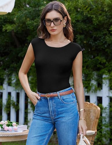 • Basic Summer Tops: The Cap Sleeves and Crew Neck Design Add A Touch of Sophistication, Making It Ideal for Layering or Wearing on Its Own. The Fitted Ribbed Silhouette Gives A Flattering Look, Update Your Chic Edit with This Knit Tops, That Can Easily Be Dressed Up or Down for Any Occasion
