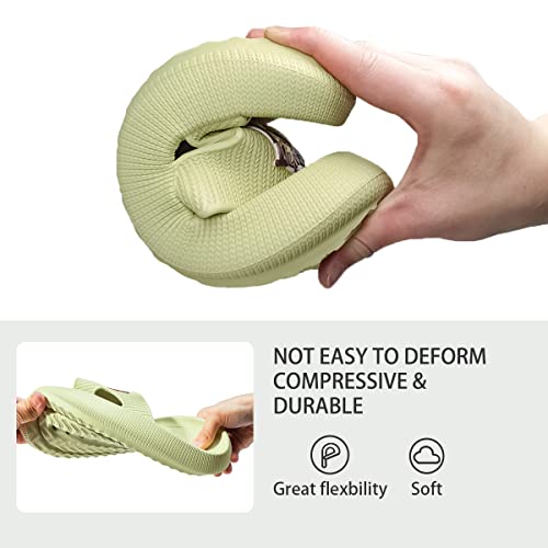 • 【Ergonomic Design】The cloud slippers are slightly recessed to perfectly wrap your feet,toe to the tail is slightly upturned by 15°,which is ergonomically designed to fit your feet,as if stepping on the clouds.The engineering design of the hollow foot bed can effectively support the foot,these take some of the pressure patient off plantar fasciitis.Simple pattern full of summer elements and classic avocado green color matching bring cloud slippers indispensable unique.