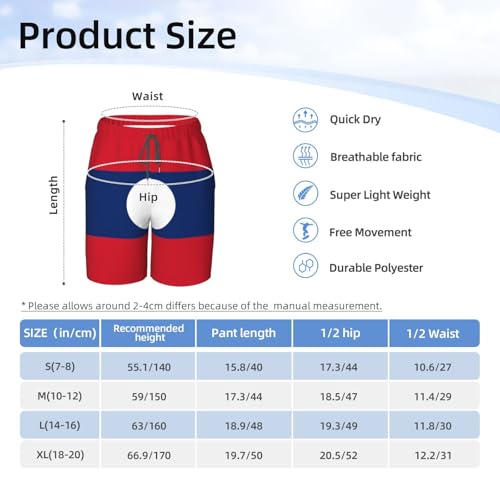 More information about Flag of Laos Youth Beach Pants, Soft and Breathable, with Drawstring Waist, Suitable for Sports and Leisure.