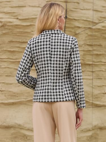 Women's Tweed Tartan Blazer Open Front Fall Winter Business Casual Plaid Jacket 6
